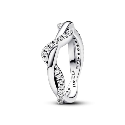 Pandora Timeless Funkelnde Verschlungene Welle Ring aus Sterling Silber mit Cubic Zirkonia, Größe 56, 193098C01-56