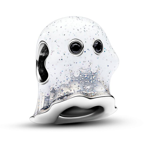 Pandora Moments Ghost sterling silver berlock with black crystal and shimmering white glow in the dark enamel 793404C01