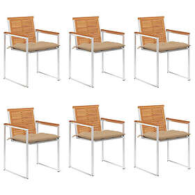 vidaXL Trädgårdsstolar 6 st med dynor massivt akaciaträ
