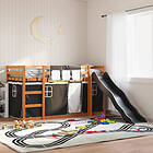 vidaXL Våningssäng med rutschkana och gardiner vit och svart 90x200 cm