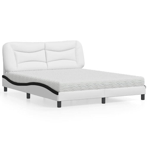 vidaXL Säng med madrass vit och svart 160x200 cm konstläder