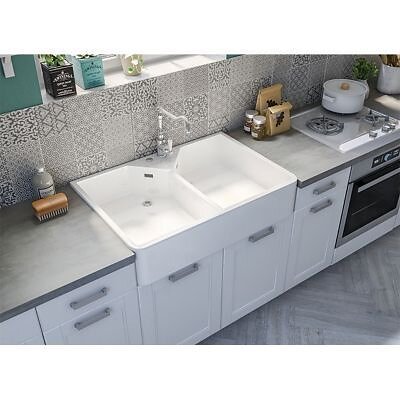 Cooke & Lewis Évier timbre d'office de cuisine à poser 2 bacs Office céramique blanc