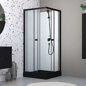 Aurlane Cabine de douche intégrale 80x80x200 cm carrée Portes coulissantes Receveur Noir Mat