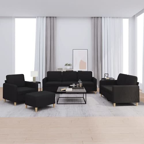 vidaXL Soffgrupp med dynor 4 delar svart tyg 3202066