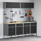 vidaXL 10-delars arbetskabinet och pegboard-set i svart MDF och metall 3321492