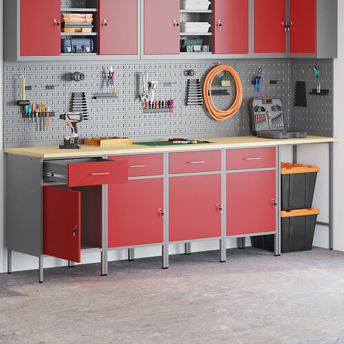 vidaXL 5-delars arbetskabinett och hörnbordssats i röd konstruerat trä 3321393