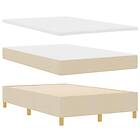 vidaXL Boxspring Säng med Madrass & Bänk Gräddvit 120x200 cm Tyg