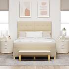 vidaXL Sängbotten med Madrass & Bänk Gräddvit 160x200 cm Tyg