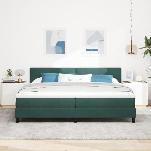 vidaXL Boxfjädersäng med madrass Mörkgrön 200x200 cm Sammet