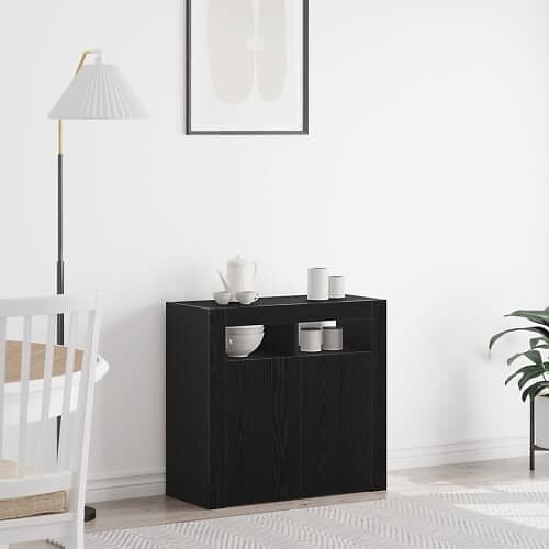 vidaXL Sido-Board med LED-lampor i svart ek 80x35x75 cm, tillverkat av trä