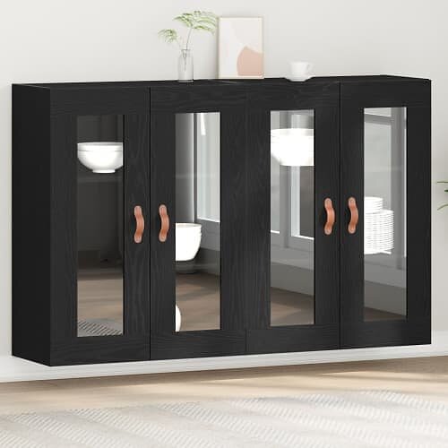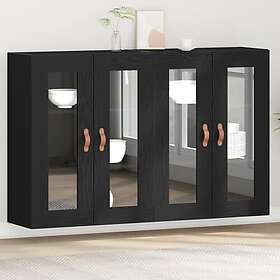 vidaXL Väggmonterat skåp Set av 2 Svart ek Massivt trä, glas