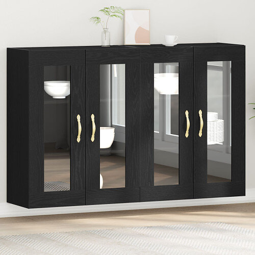 vidaXL Väggmonterat Skåp Set om 2 Svart ek Trä, Glas 139 x 34 x 90 cm