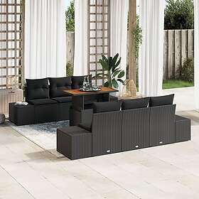 vidaXL Ensemble de canapé de jardin 7 pièces Rotin Noir Meuble d'extérieur Table Rectangulaire