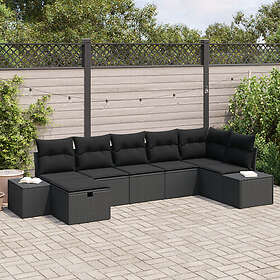 vidaXL 7-delat trädgårdssoff set med kuddar i svart polyrotting