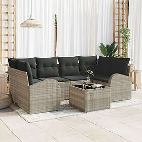 vidaXL 7-delat trädgårdssoffset med kuddar ljusgrå polyrotting