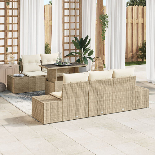 vidaXL Salon de jardin 6 Pièces avec Coussins Beige Poly Rotin