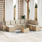 vidaXL 9-delars Trädgårdsoff-set med kuddar Beige Polyrotting Akacia