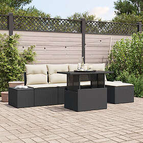 vidaXL 6-delars trädgårdsoffset med kuddar svart polyrotting