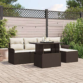 vidaXL 6-delat trädgårdsoffaset med kuddar Brun Polyrotting