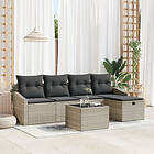 vidaXL 6-delad trädgårdsoffgrupp med kuddar ljusgrå polyrotting