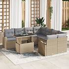 vidaXL 9-dels Trädgårdsoff set med kuddar Beige Poly Rattan