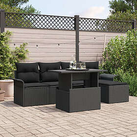 vidaXL 6-delars trädgårdsoffgrupp med kuddar svart poly rattan
