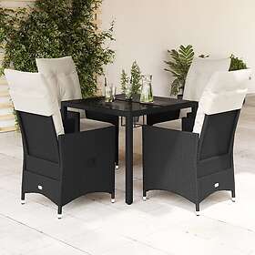 vidaXL 7 Delar Trädgårdssats med Dynor Svart Poly Rattan Akaciaträ