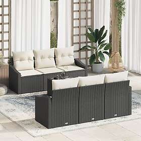 vidaXL 7-delars Trädgårdsoffset med kuddar Svart Polyrotting