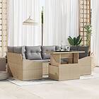 vidaXL Salon de jardin 7 Pièces avec Coussins Beige Poly Rotin