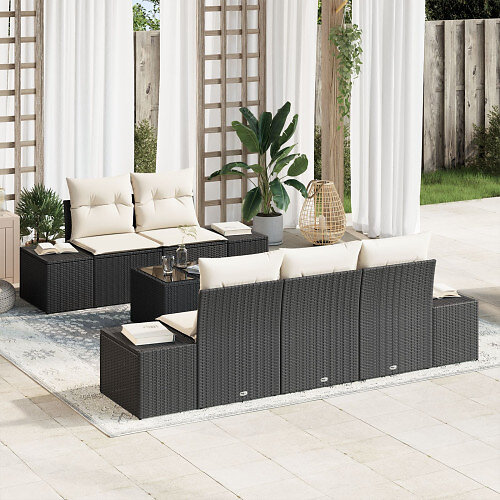 vidaXL Lounge Set 6 Pièces avec coussins Noir Poly Rotin