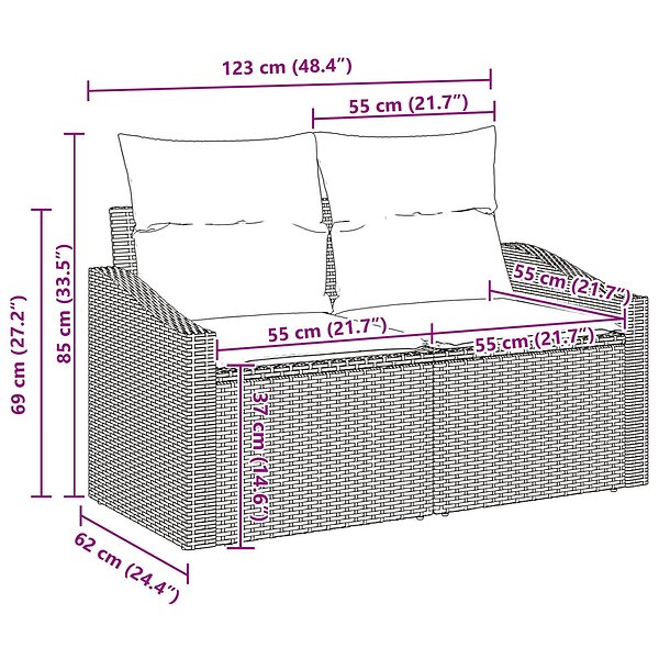 vidaXL 6-delat Trädgårdsoffset med kuddar Svart Polyrotting Akacia