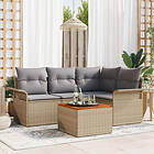 vidaXL 5-delars trädgårdsoff set med kuddar Beige polyrotting akacia