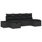 vidaXL 6 Delar Trädgårdsoffagrupp med Kuddar Svart Poly Rattan
