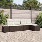 vidaXL 5-delars trädgårdsoffset med kuddar brun polyrotting