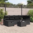 vidaXL 7-delars trädgårdsoffset med dynor svart poly rattan