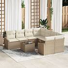 vidaXL 9-delar Trädgårdsofa Set med Kuddar Beige Poly Rattan