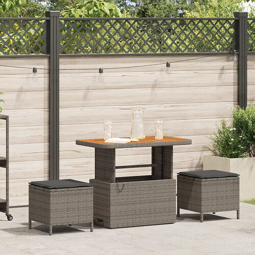 vidaXL 3-delat trädgårdsset med dynor Grå Poly Rattan Akacia