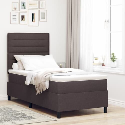 vidaXL Boxfjädringssäng med madrass & LED Mörkbrun 100x200 cm Tyg
