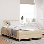 vidaXL Boxfjäder säng med madrass & LED Gräddvit 120x200 cm Tyg