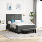 vidaXL Boxsäng med madrass & bänk mörkgrå 140x200 cm tyg