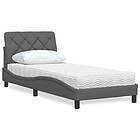 vidaXL Säng med madrass mörkgrå 90x200 cm tyg