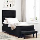 vidaXL Boxfjädersäng med madrass & bänk Svart 90x200 cm Tyg