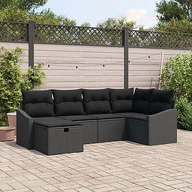 vidaXL 6-delat trädgårdssoffset med kuddar svart poly-rotting