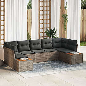 vidaXL 7-delars trädgårdsoffaset med kuddar Grå Poly Rattan Akacia