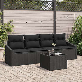 vidaXL 5-delad Trädgårds Matgrupp med Kuddar Svart Poly Rattan