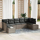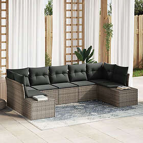 vidaXL Salon de jardin 7 pièces avec coussins Gris Poly rotin