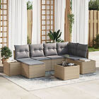 vidaXL 7-delat Trädgårdsoff set med kuddar, svart poly rattan