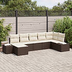 vidaXL 7-delars trädgårdssoffaset med kuddar brun poly rattan