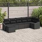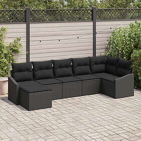 vidaXL 7-delars trädgårds matsalsset med kuddar svart poly rattan