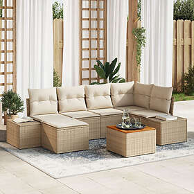 vidaXL 7-delars Trädgårdssoffset med Kuddar Beige Poly-Rotting Akaciaträ